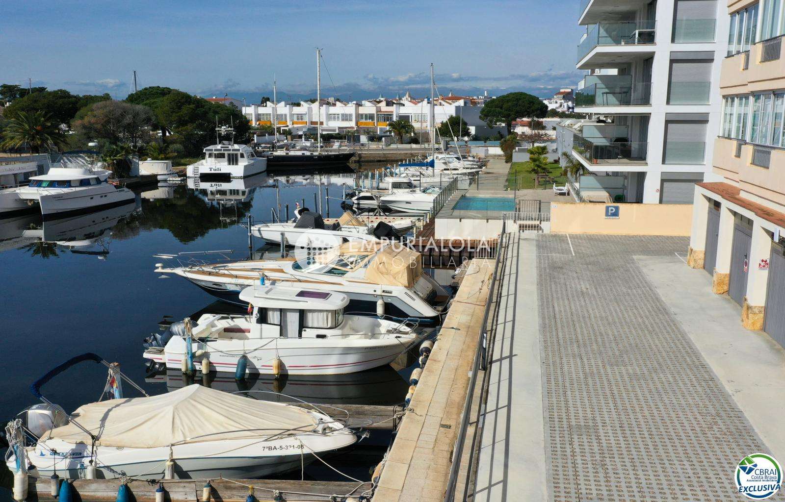 The mooring is located in a private community with barrier-controlled access, ensuring security and peace of mind throughout the year. Its location allows easy manoeuvring and quick access to the main canal and the sea.