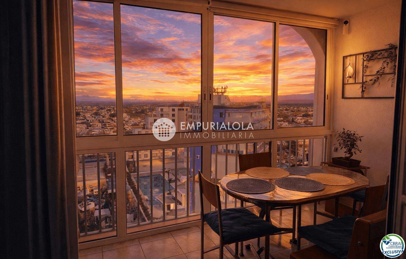 Apartamento situado en la planta 12 , en la zona de Delta Muga, con vistas panorámicas al lago y a la montaña.